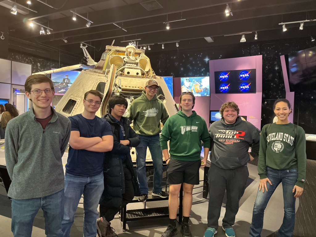 We are an engaged team of interested and passionate students from multiple backgrounds with a shared engagement in robotics and engineering. We are members of Cleveland State University’s American Institute of Aeronautics and Astronautics branch, the Cleveland State Robotics Club, and other areas of university life united by a common goal.